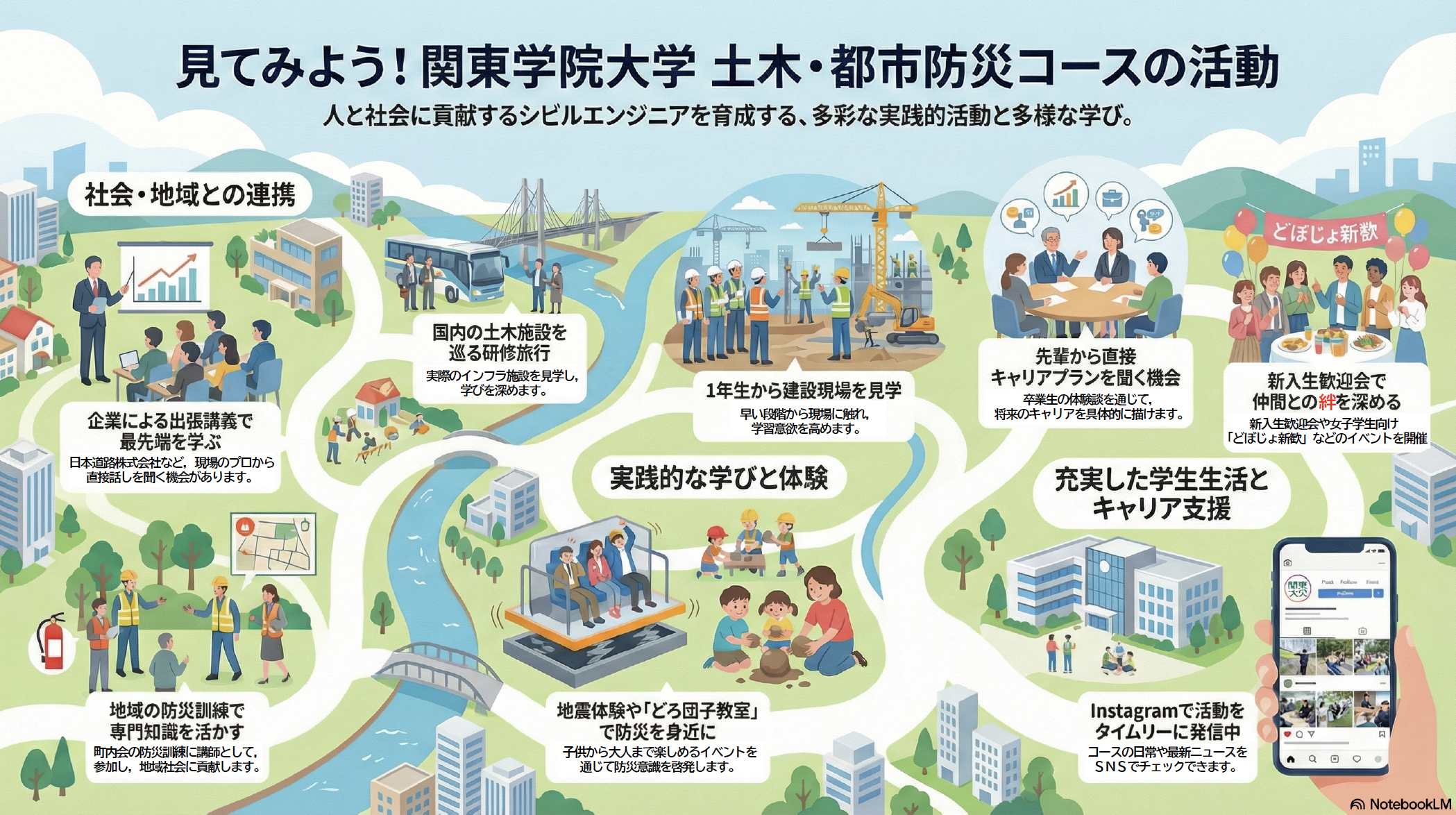 土木・都市防災コースのホームページやページからリンクを張っている動画などを使って,NotebookLM にポスターを作ってもらいました。 文字は潰れていたので,あとから修正しています。 イラスト部分は修正できていませんので,大目に見てください。